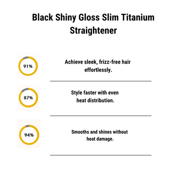Achieve salon-quality straightening with the Black Shiny Gloss Slim Titanium Straightener. Featuring high-performance titanium plates, this straightener glides effortlessly through your hair, delivering smooth, frizz-free results in record time. The slim design ensures easy maneuverability, while its sleek, glossy finish adds a touch of sophistication. Perfect for all hair types, it offers quick heat-up and long-lasting durability, making it your go-to tool for flawless, shiny hair every time.