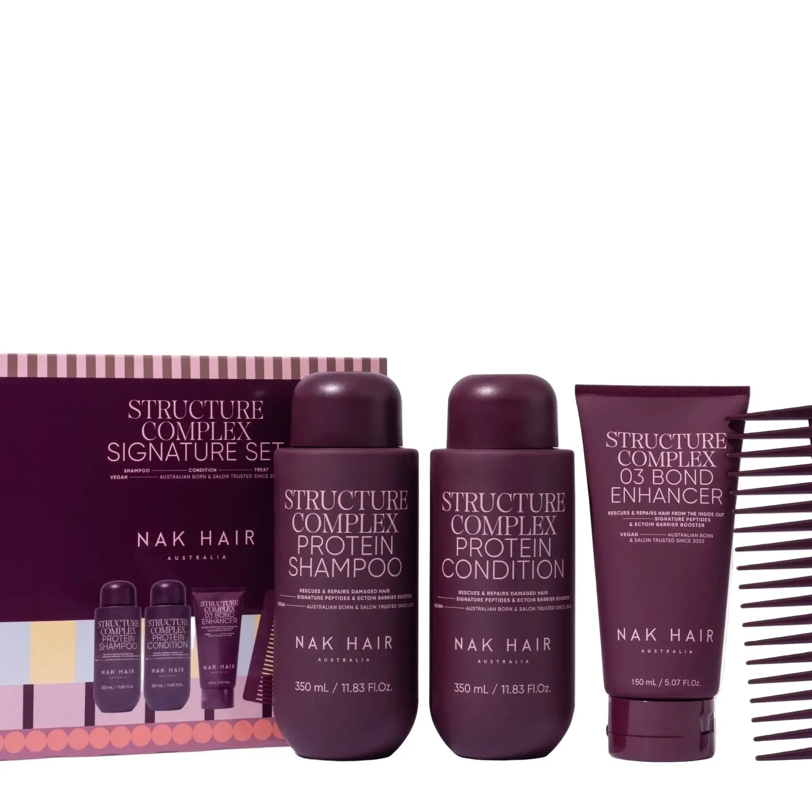 The Nak Structure Complex System has been specifically formulated for the repair of damaged, brittle and lifeless hair.