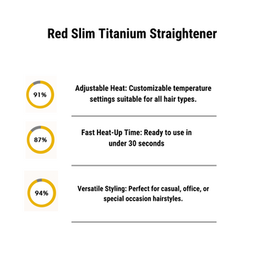 Transform your hair with the Red Slim Titanium Straightener. Featuring premium titanium plates that heat quickly and distribute heat evenly, this straightener guarantees smooth, shiny results with minimal effort. Its adjustable heat settings offer versatility for all hair types, while the ergonomic design ensures comfort, allowing you to create flawless styles every time.